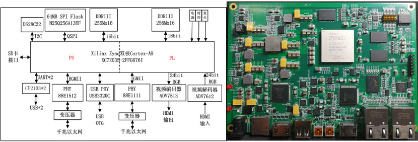 板卡使用Xilinx公司的28nm XC7Z035/045-FFG676器件作為核心處理器件,板卡支持HDMI輸入、HDMI輸出、10M/100M/1000M自適應(yīng)Ethernet接口、USB OTG、UART串口、SD卡接口、DDR3接口等等。